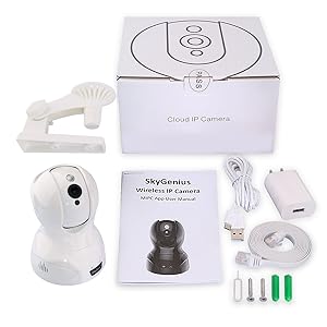 skygenius社製のスマホでの遠隔制御可能なワイヤレス防犯カメラ、防水機能は無く屋外設置はできませんが首振り機能がついており可動監視カメラとして機能します。